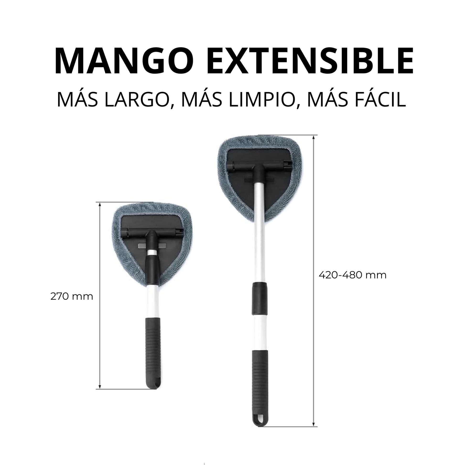 Su mango telescópico extralargo evita agacharte y su cabezal giratorio 180° llega a cada rincón del coche sin esfuerzo.